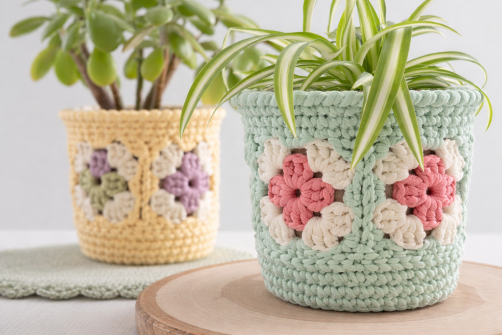 EASY Crochet Plant Cover with Granny Squares Crochet Pattern is the perfect project for anyone who loves combining creativity, sustainability,