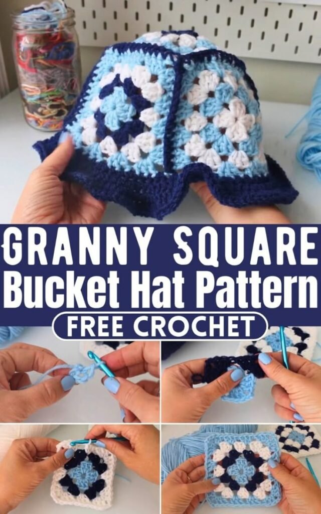 The Crochet Granny Square Bucket Hat Tutorial is the perfect project for those who love combining vintage style with a