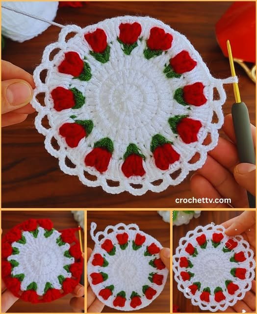 Learning how to make a 3D Crochet Tulip Pattern Coaster with Crochet Rose Flowers CROCHE PATTERN is a beautiful way