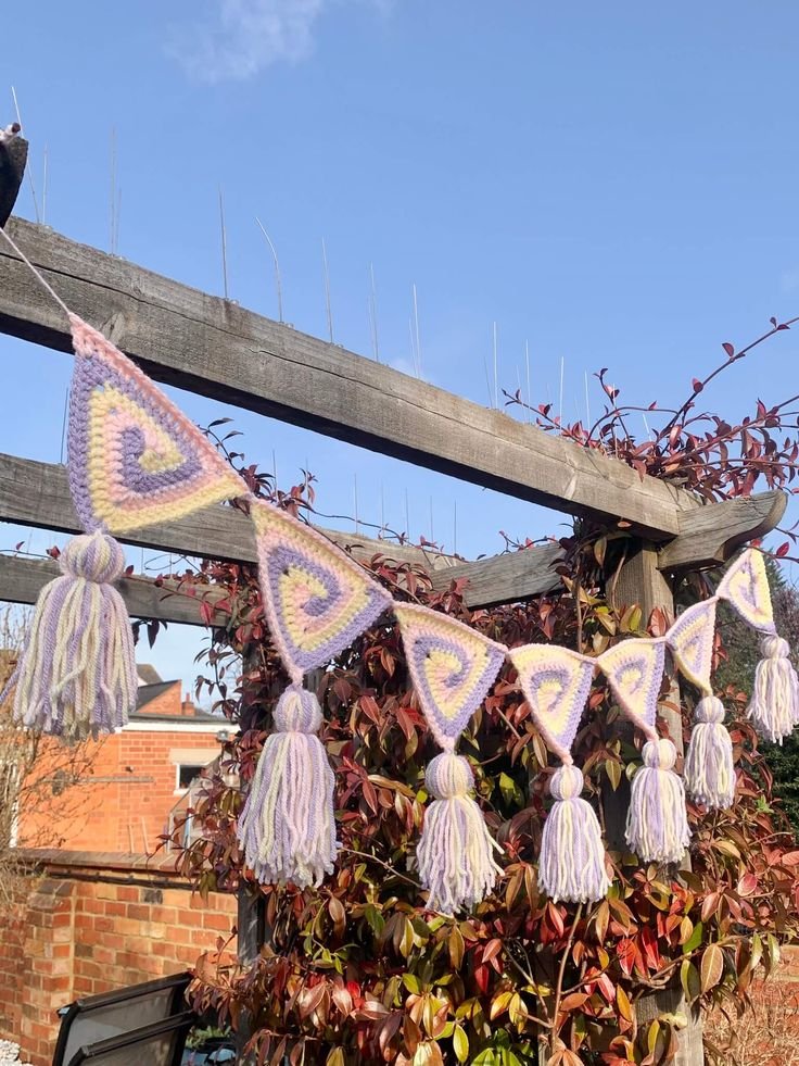 Lastly, think about creating themed bunting sets — for example, pastel spirals for spring, bold primaries for summer, or warm autumn tones for fall festivals. The possibilities are endless with this versatile crochet project.