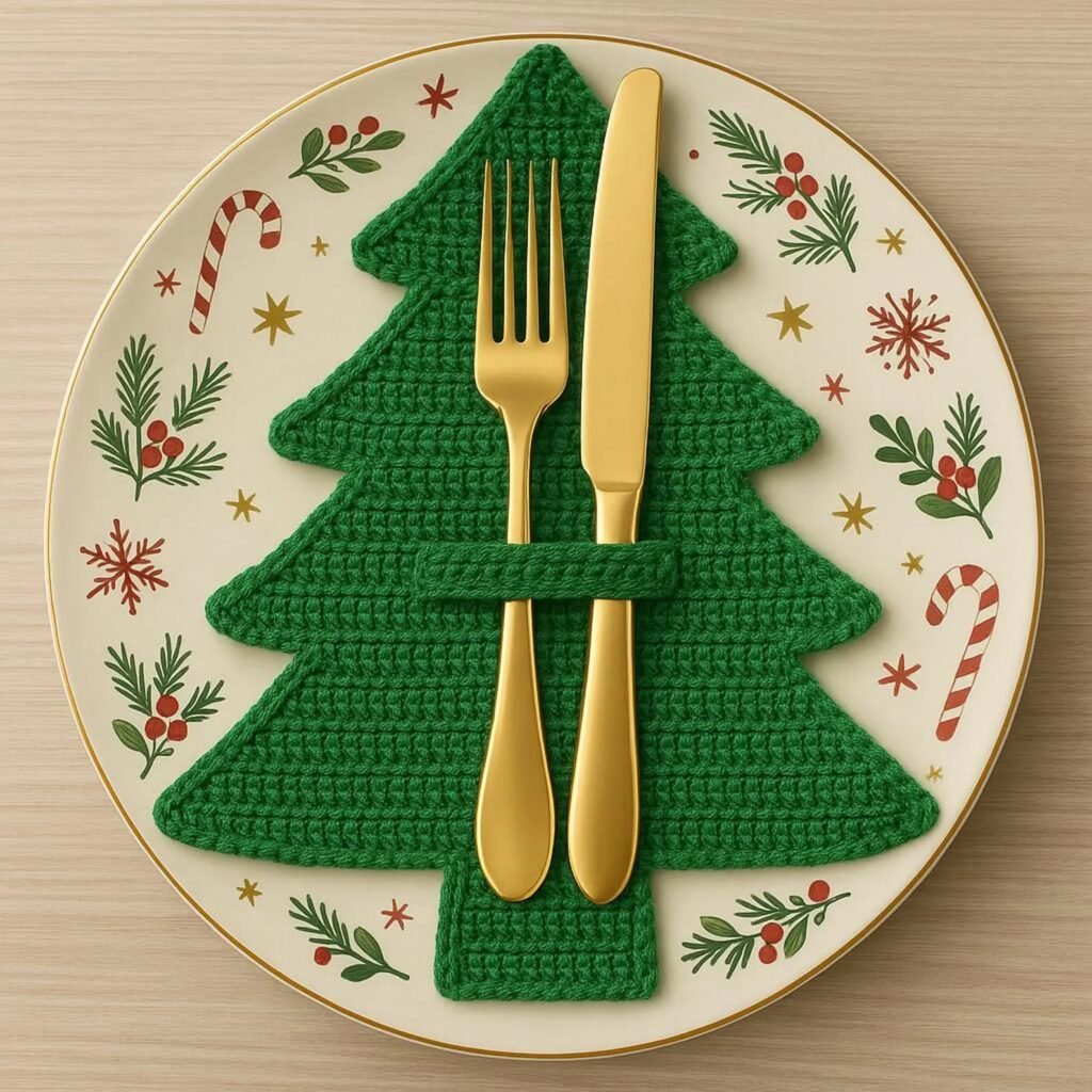 Christmas tree cutlery holder design Crochet Pattern is one of the most delightful and creative projects you can make for