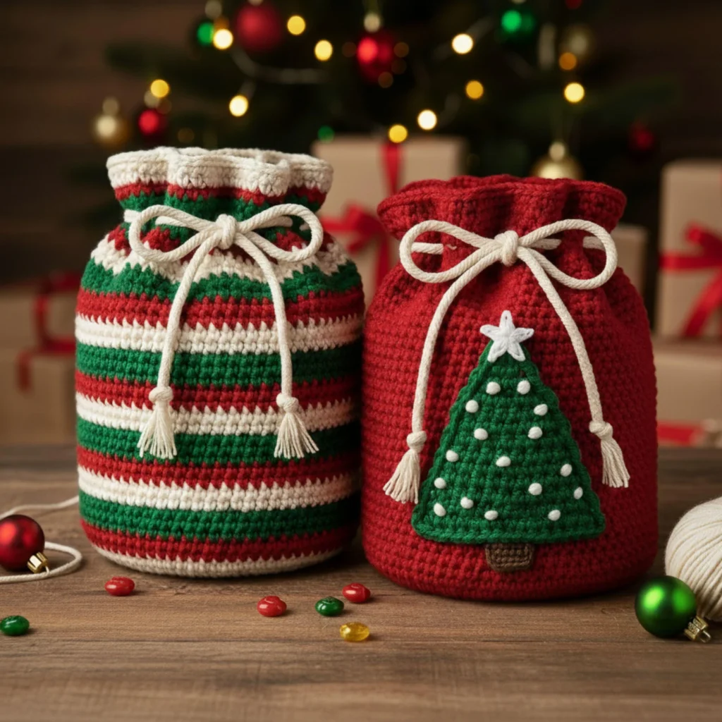 Christmas bags with drawstring Crochet Pattern are one of the most delightful projects you can create during the holiday season.
