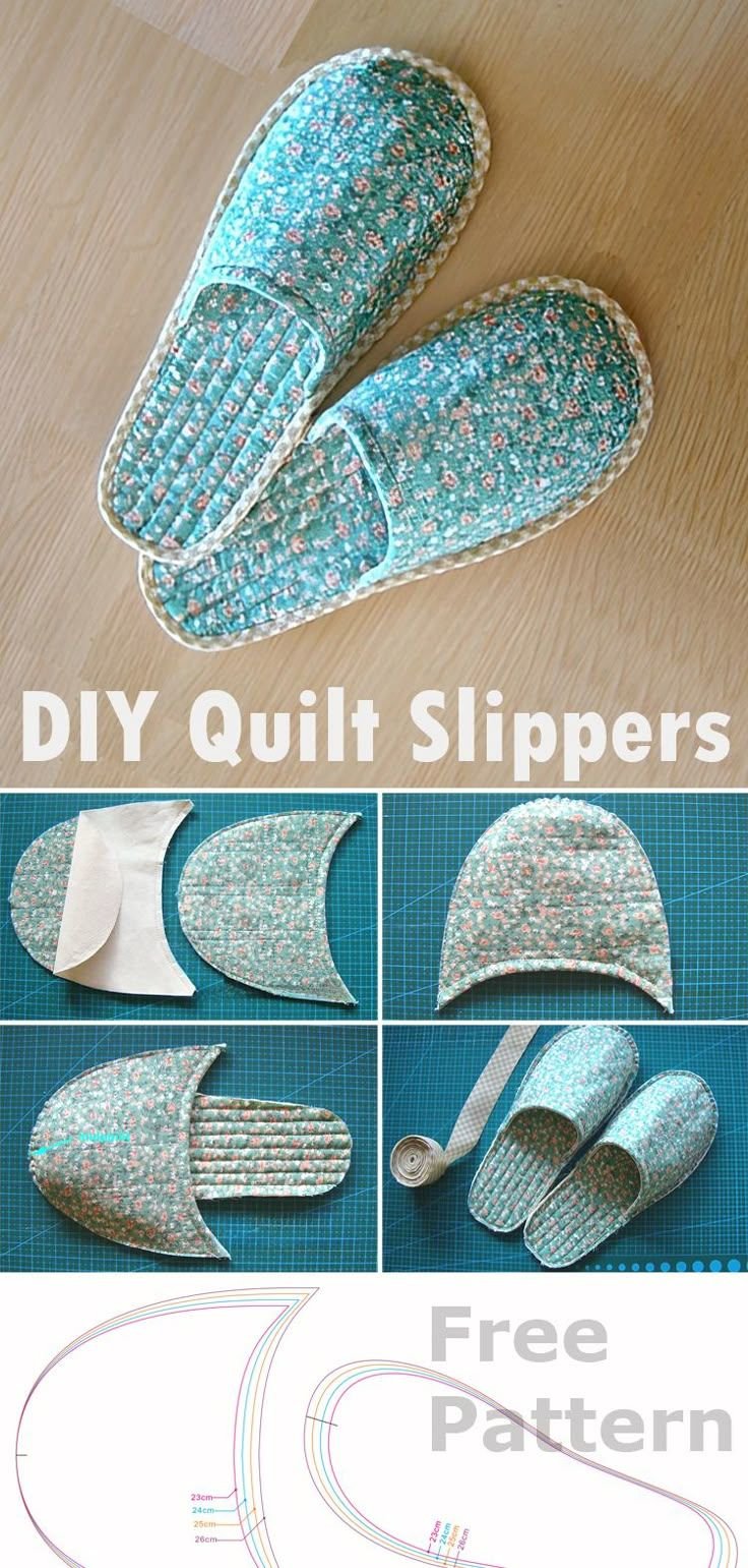 Finally, download a free quilted slippers pattern or draw your own using an outline of your foot. Make sure to cut the fabric with the grain running in the right direction for flexibility and comfort.